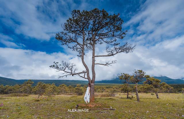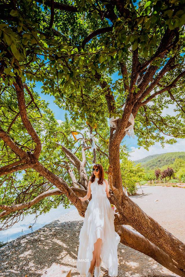 由于云杉坪、蓝月谷都是在玉龙雪山这里的,建议穿着白色长裙,这样就可以不用换衣服了。云杉坪有着茂密无边的杉树林,穿着白色长裙立马小仙女