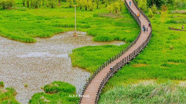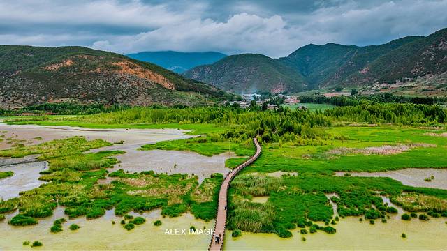 走婚桥两边的草海区域,春夏季是翠绿色一片,金秋时变成金黄一片。到晚上,这里银河清晰可见,是拍星空的最佳地点之一。