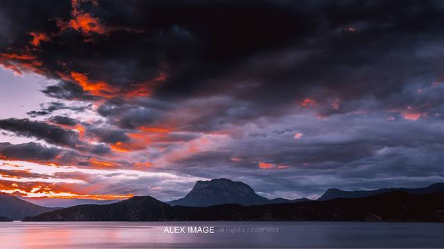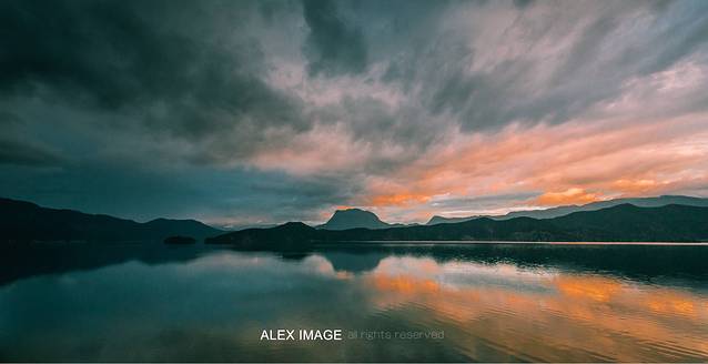 有一种美,美在落日余晖,大地苍茫、水天一色的泸沽湖;
