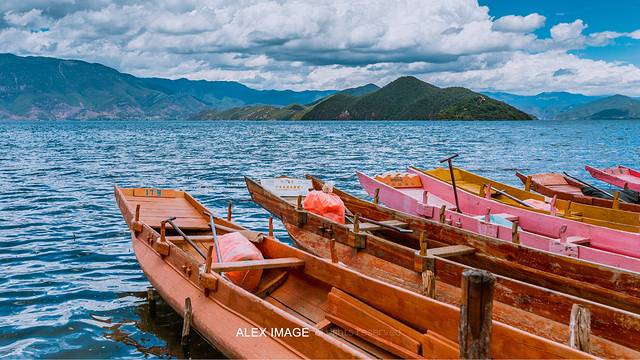 划猪槽船:可以在客栈订,各个码头都有猪槽船可坐,有人工和电动之分。大落水、三家村码头猪槽船数量多、规模大、价格规范。其他沿湖的村子都可以租船,各大小岛都是可以划船上岛的。猪槽船可谓是泸沽湖的一大特色。