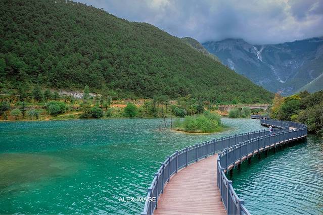 蓝月谷是著名的爱情圣地,四周绿黄色层叠的树林,还有高处的雪山相互掩映,在这里随意拍下的景和人都超级美。
