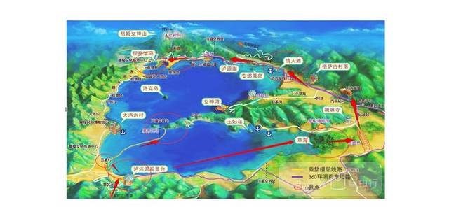 登小岛:泸沽湖上的小岛众多,以“蓬莱三岛”最广为人知,即洛克岛、里务比岛、里格岛。平均每个小岛基本都要花上2个小时来回,建议大家选择1-2个岛游玩即可。