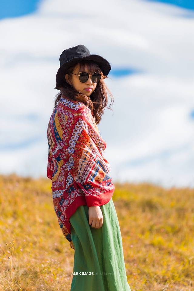我这次带了一件有民族风格的披肩,一来可以御寒,二来搭配衣服,拍照时更具多样性;除了披肩,我还带了手捧花,穿白色长裙时可以拿着,拍照时人物看上