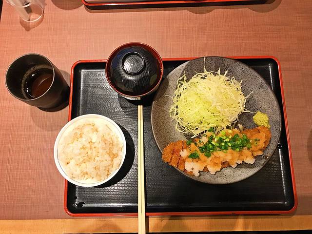 本来想去黑门市场,结果去晚了基本都关门了,在附近逛到一片美食街,各种小店铺。选了一家人气火爆的,感觉要排队的一定不会差