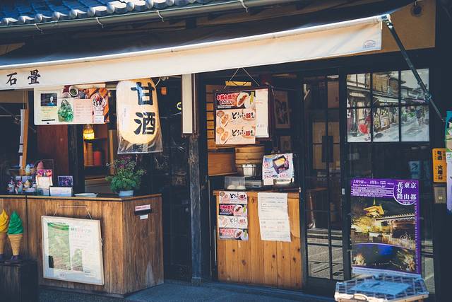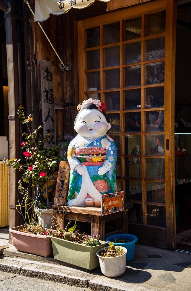 纪念品店,陶器店和餐厅林立路旁。这里卖各种各样的小玩意、艺术品、小吃甜点等,典型的日式风格建筑。阳光下在这条小路走走也是十分惬意,不过人也是非常多的
