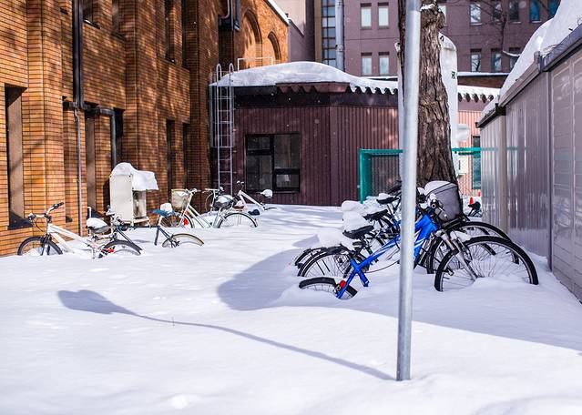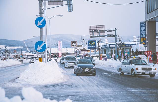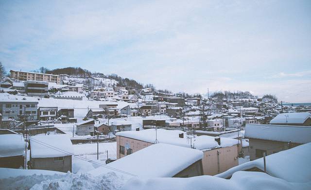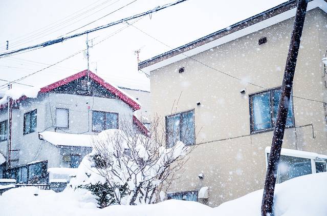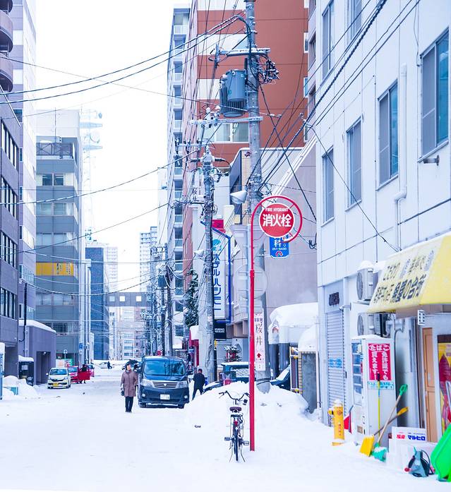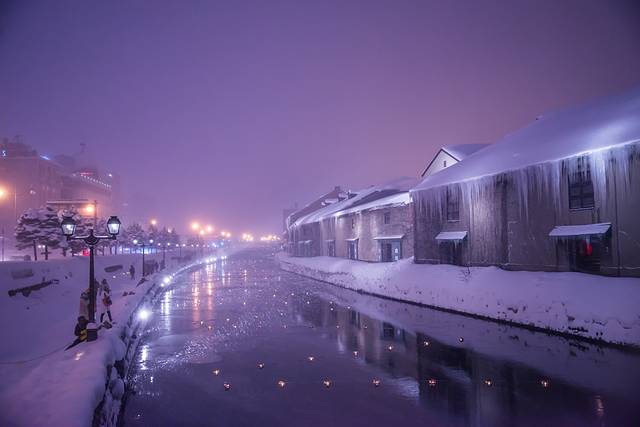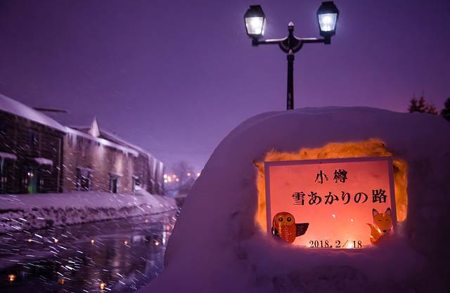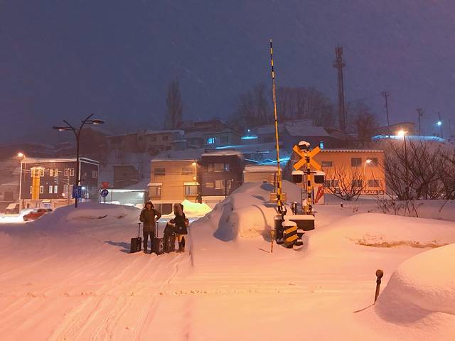 虽然到达 小樽 时才6点多,但这边已经完全是黑夜了,前往住宿也是费了一番功夫。不远的路因为路上厚厚的积雪,拖着箱子走起来也很费劲。最后在住宿附近,本来可以直接穿过去,但路边堆成山的雪阻挡了道路,让我们又得绕行一大圈。