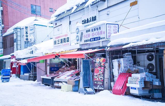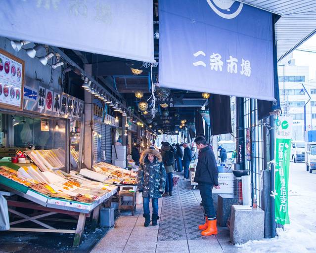 逛了白色恋人公园后我们一起去了二条市场,本来想找个卖生鲜的市场买各种肉回去烤着吃,转了半天也没逛到想要的那种市场