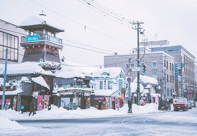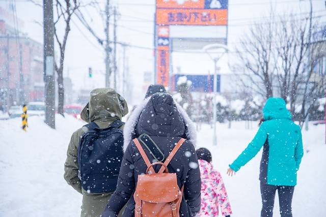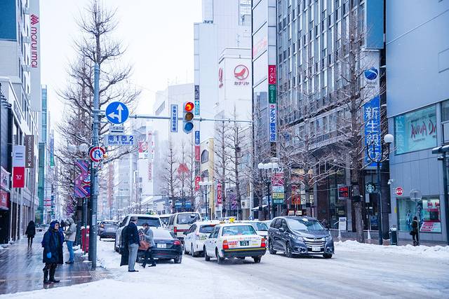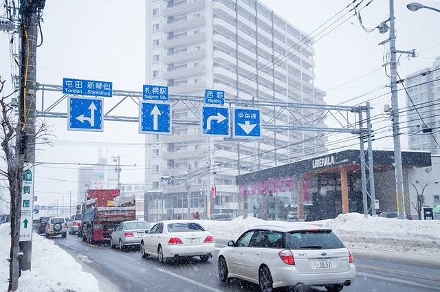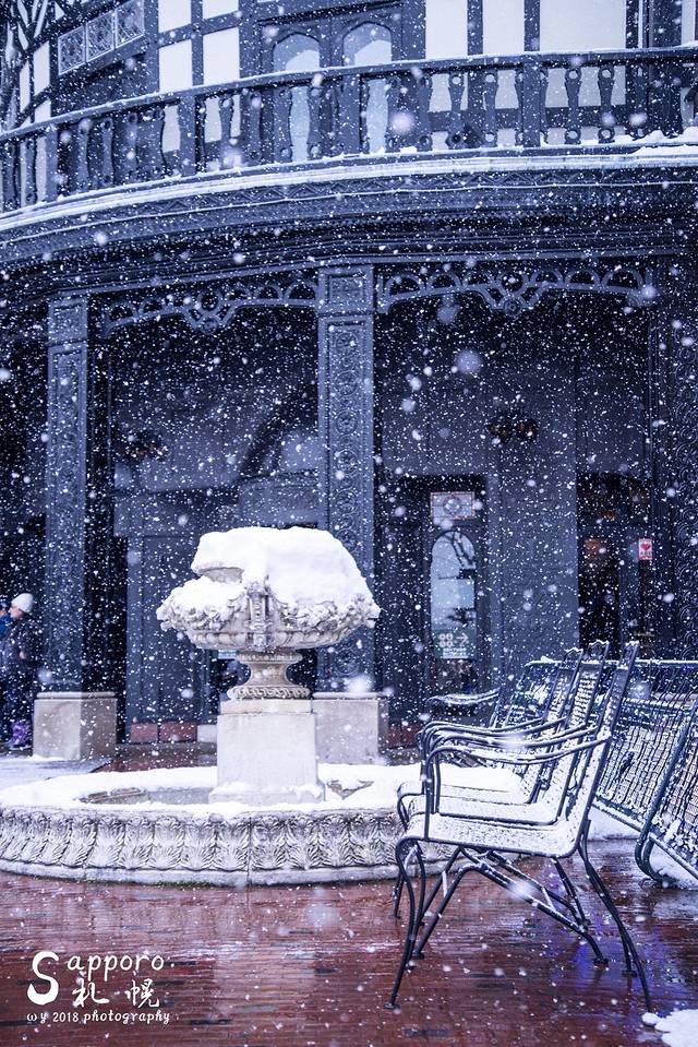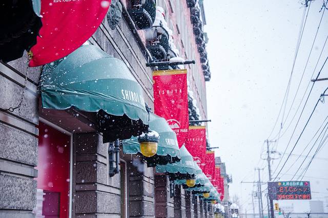 早上起床还是阳光明媚,坐个地铁出站后就大雪纷飞。配上即将要去的白色恋人工厂,可以说是相当应景了