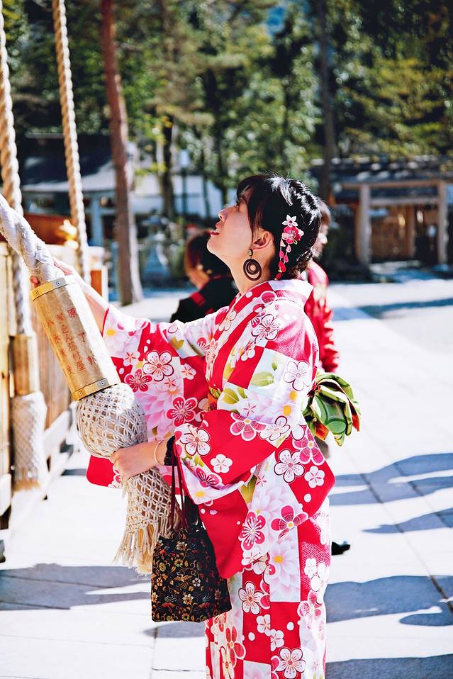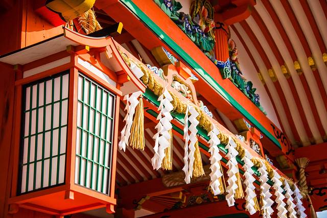 有的拜殿前还挂有很粗的麻绳,祈祷者要摇动两下,让麻绳上的风铃发出响声