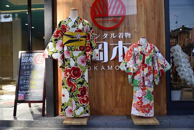 黛蒙是专业班子,自己带了和服穿好,但柚子要去租,所以在街边找了家和服店。