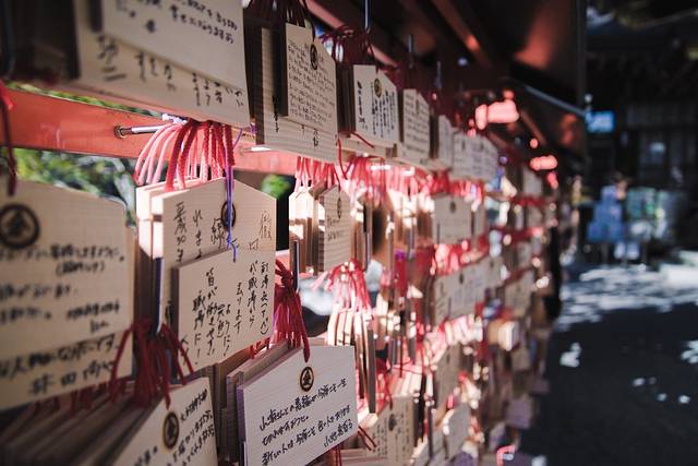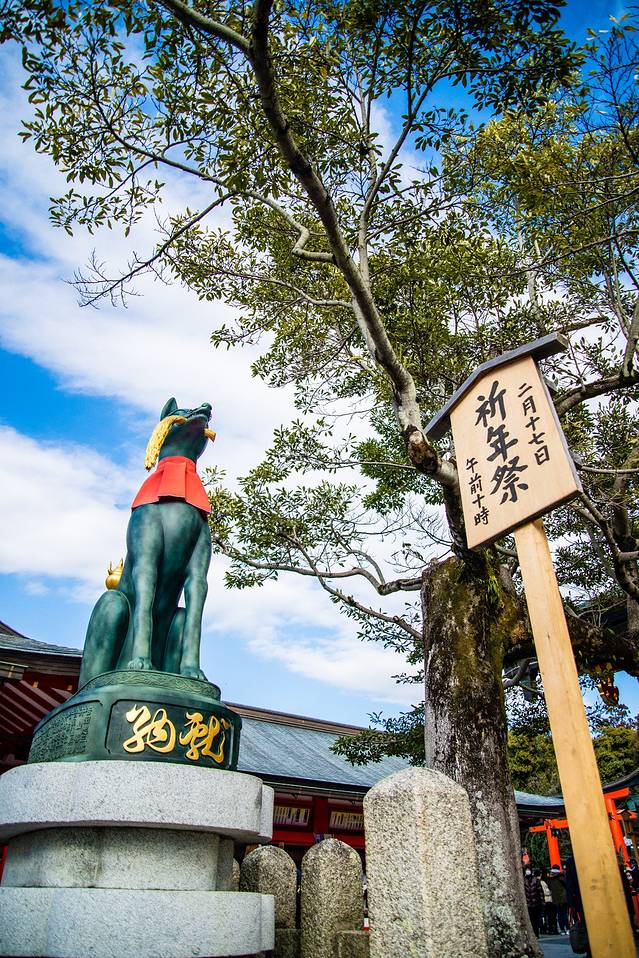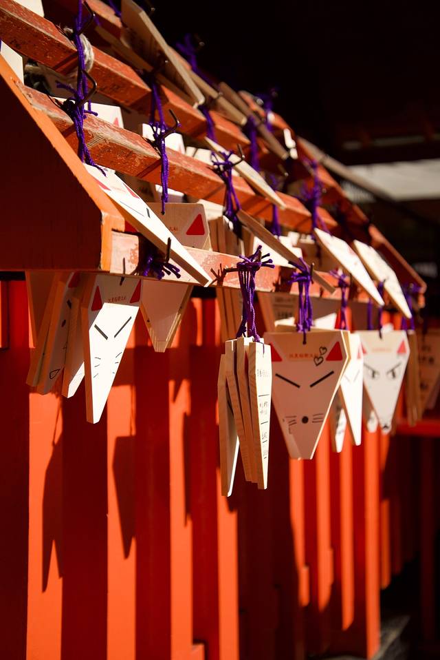 在神社里还能见到各式各样的狐狸石像,这是因为狐狸被视为神明稻荷的使者。狐狸脸形的绘马是这里的一个特色
