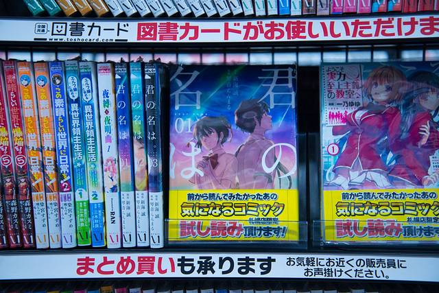 路过一个书店,看到各种火影海贼你的名字的漫画册真是想带几本回去呐