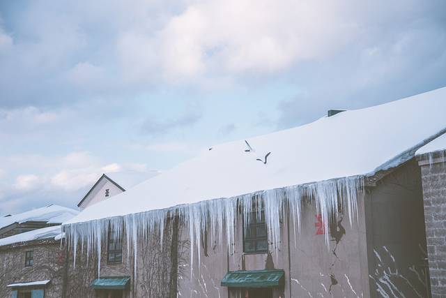 小樽 食堂上面的冰凌有五六米长,从屋檐基本延伸到地面,很是壮观
