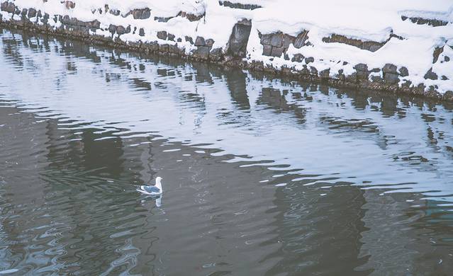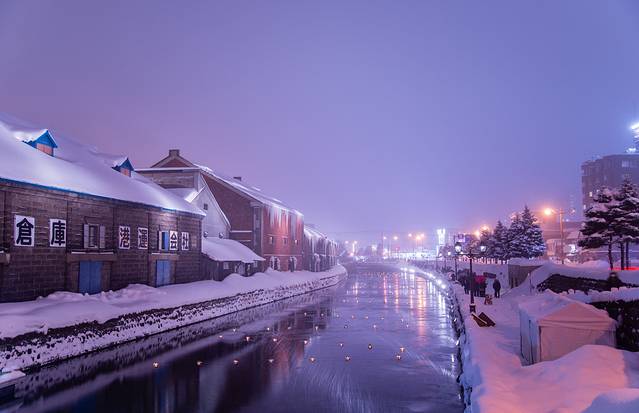 等到了 小樽 ,出了车厢,看到这里漫天飞雪。虽然手冷脚冷,但内心还是火热的,这是一个南方人对雪的向往,也是多年来对 北海道 的期待