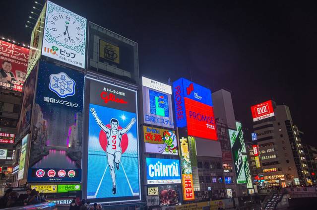 通天阁是 大阪 的地标之一,白天看起来可能感觉简陋破旧。一到晚上,这里却成为 大阪 闪亮的存在,各种灯牌亮起,店家表示“我不怕出钱挂牌,就怕你看不到”