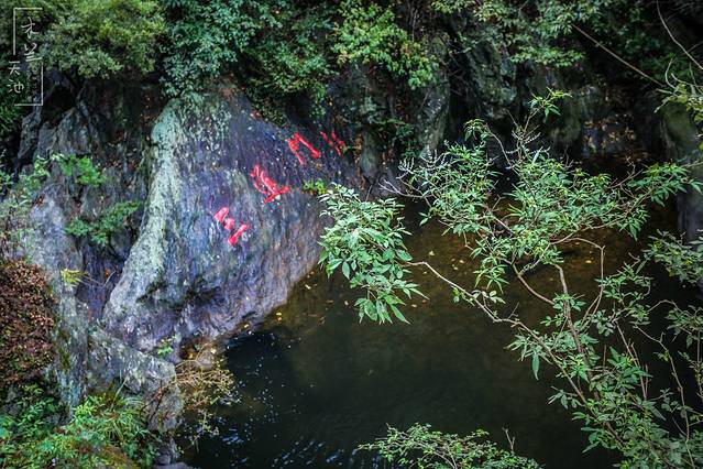 接着来到堤坝上,波光粼粼的龙池展现在眼前。龙池是大峡谷游览线的起点和入口,池水碧兰清澈,山峦深幽,树丛倒影,恬静秀美,可荡舟游弋,可环水踏青。
