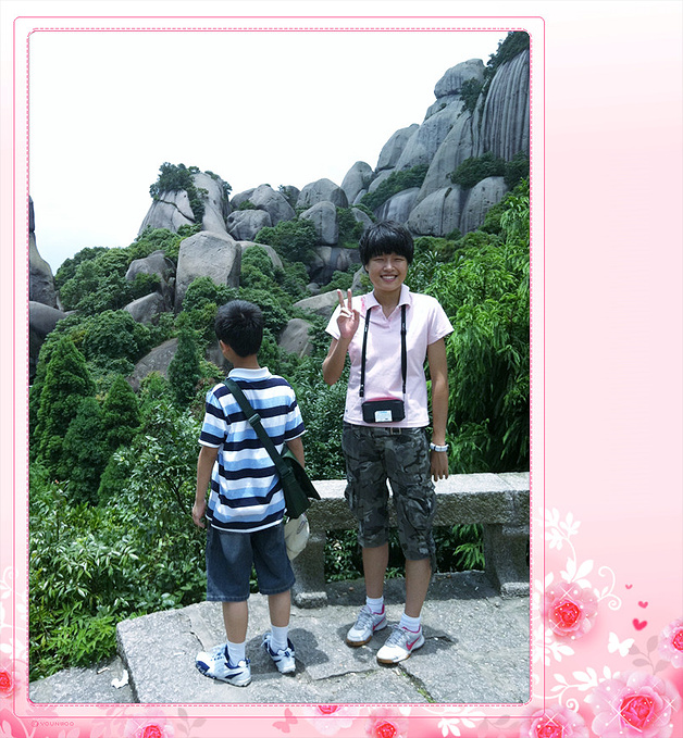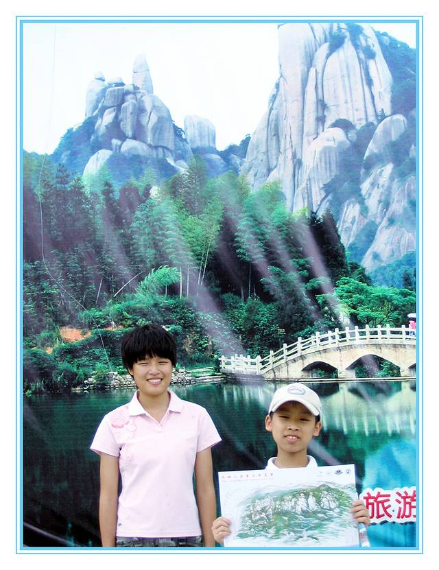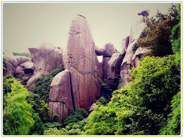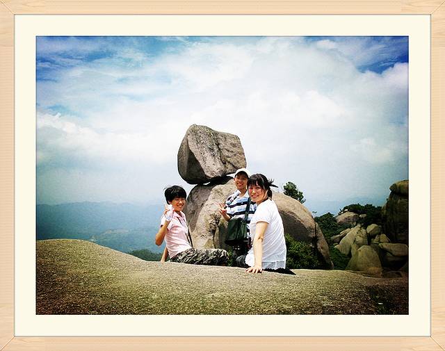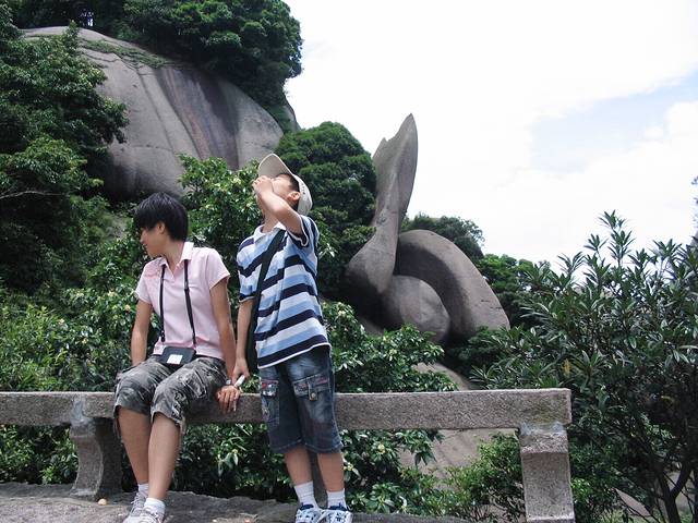 这里的每一座山峰都是一个神奇的故事,每一处景观都有一个美丽的传说。看,左前方有座“夫妻峰”,它是太姥山的标志。