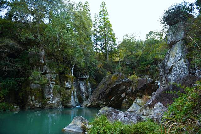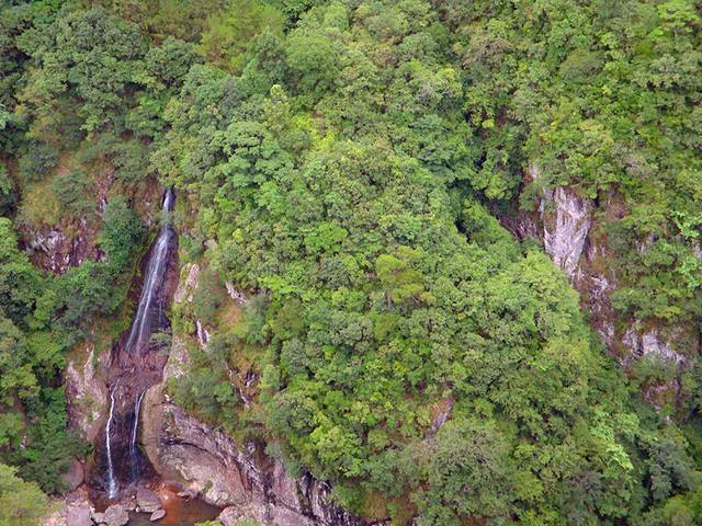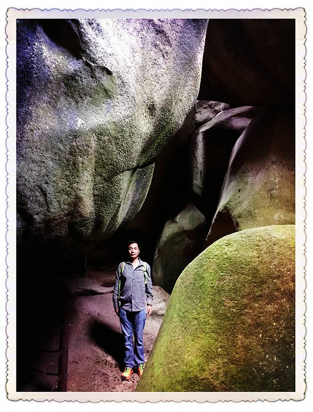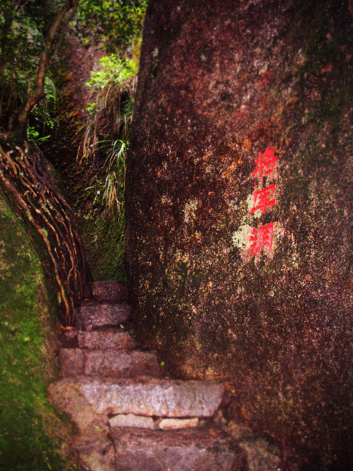 九龙洞,传说有九龙出没,故名。洞由巨大的花岗岩堆叠而成,大小不等、形态各异,洞中有洞、深不可测。洞的上游,溪涧陡峭,流水常年倾入石洞,穿潭入石,所经之地,石洞一层套一层,流水一潭接一潭。洞中岩石奇姿异态,表面光滑异常。