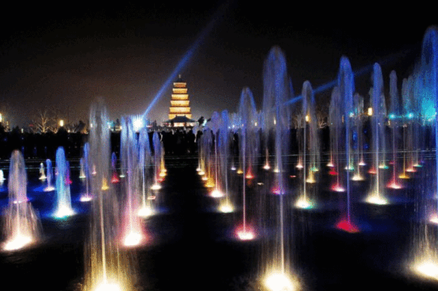 广场上的音乐喷泉可谓是相当壮观,与喷涌的泉水遥相呼应的是广场上各种各样的雕塑,在炫彩的灯光衬托下,伴着音乐的水柱撒了欢儿地跳跃舞蹈。