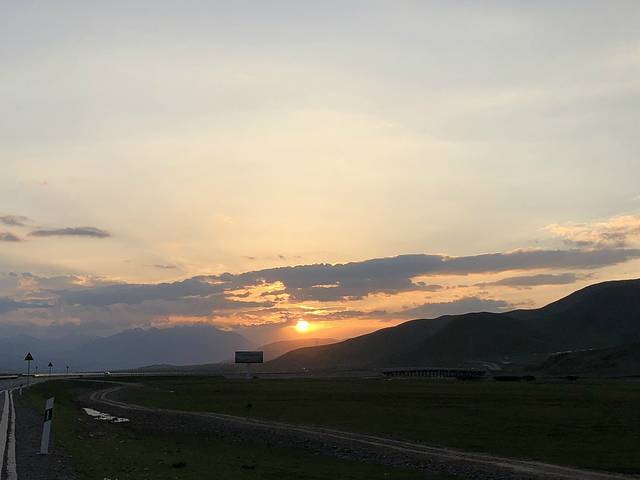 在阿克塞小镇意外看到的落日❤