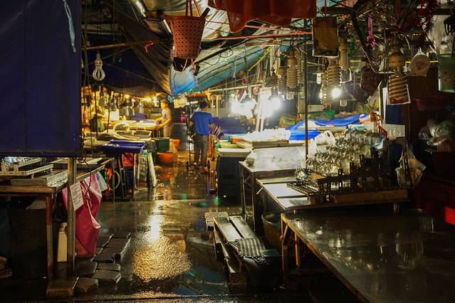 芭提雅 海鲜市场”,坐上北段的双条车,就会来到这个不太大的市场。这边的海鲜都是居民们当天早上捞的,卖到晚上七点左右收摊,如果早一些来也许能吃到更新鲜的。市场里就有现场加工的摊子,也有卖一小包一小包的调味料。更棒的是!市场的旁边就是一个绿地公园,公园里更是有专门出租野餐垫的小店,只要20铢就可以和朋友们坐在一起,一边吹风一边吃新鲜的海鲜,这样的夜晚实在是太开心了!