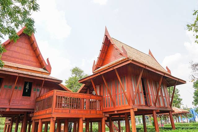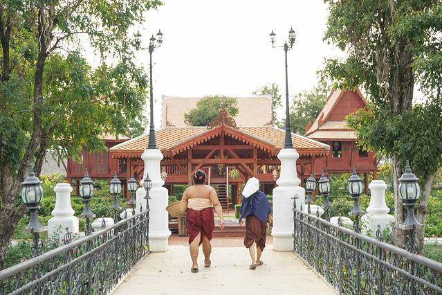 第三站是一个当地的民俗村,还蛮多当地人来这里租了古时候的衣服拍照,游客同样也可以体验。公园里的建筑和商铺都做成 泰国 古时候的样子,还蛮有意思的。