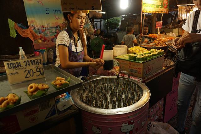虽然没有赶上最大最热闹的周末夜市,但是塔佩门外的【长康夜市】(也叫 清迈 夜市)也足够热闹了。只不过依然和我们之前遇到的所有夜市一样,里边只有衣服、工艺品,或是美食区的餐厅,比较少街边小吃可以吃。