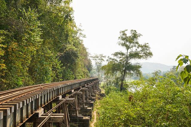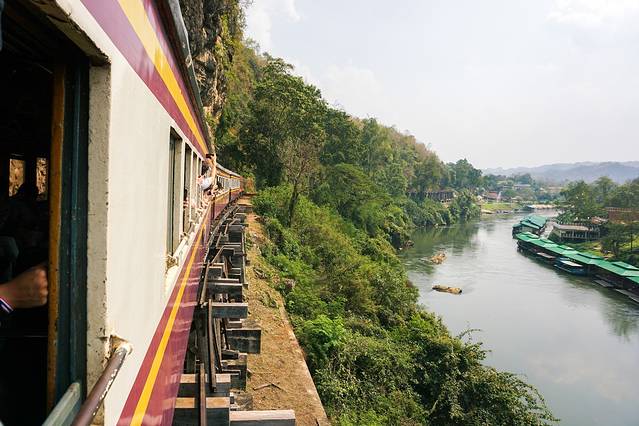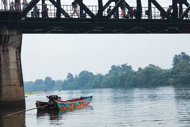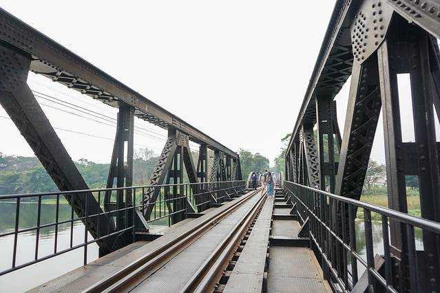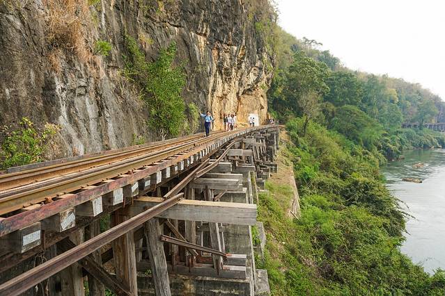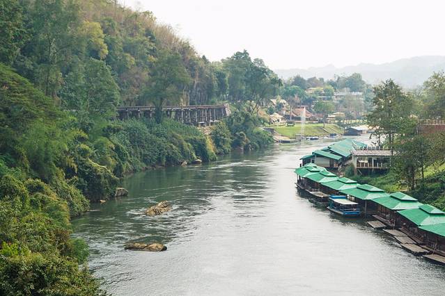 在 曼谷 西北 122公里的 北碧 府(Kan-chanaburi),这座横跨桂河的大桥———桂河大桥,折射了二战期间的一段历史:当年日军占领泰境期间,强迫盟军战俘建造铁路连接 缅甸 及暹罗,这条铁路在牺牲了无数宝贵性命后才得以完成,故有“死亡铁路”之称。同时堪称史上最出色的战争片之一的《桂河大桥》,也让它更为闻名。(来源百度百科)