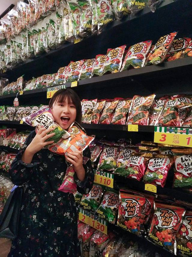 其实整片夜市下来和我想象的不大一样,找来找去一个小吃摊都没有(这怎么可以叫做夜市呢!),逛下来大多是卖各种小东西的小摊小铺,或者是路边有酒吧和餐馆。但是这里有一家好大的【小老板】啊!各种口味各种类型的小老板紫菜,让我好像掉进了天堂!