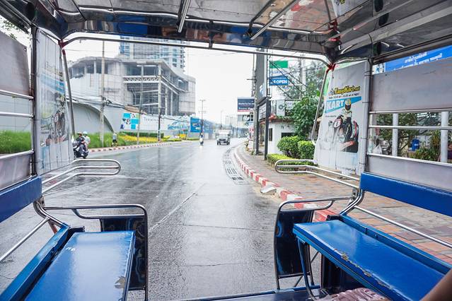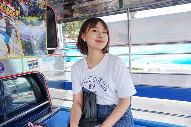双条车差不多相当于招手即停的公交车,有固定的路线和票价。只要搞清楚了他的路线,随时在路边招手就能直接上车。到了目的地按铃下车,并给司机一人10铢的车费就可以啦。如果不会路,我们的办法是用googlemaps搜一下路线,然后时刻盯着定位。