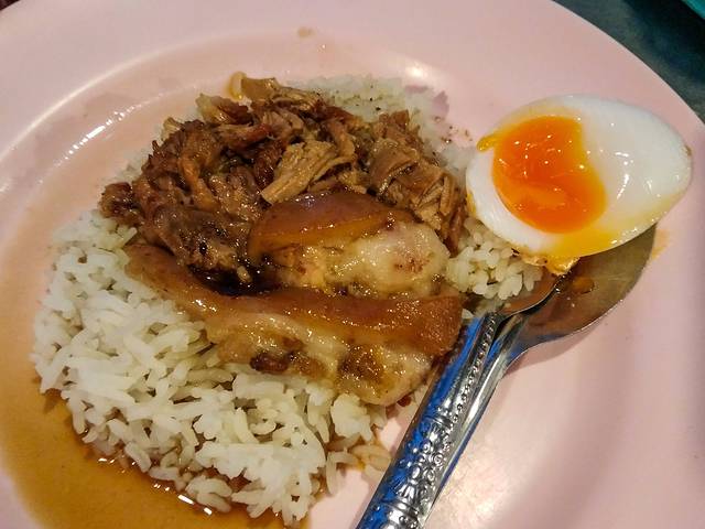 猪脚饭和猪大肠的味道都不错,虽然不太惊艳,但是几块钱人民币就能吃到这么美味的卤味,对我们来说也非常开心了。不过提醒大家不要点小份的猪脚饭,我怀疑猫都吃不饱的。