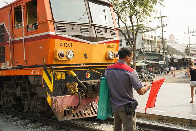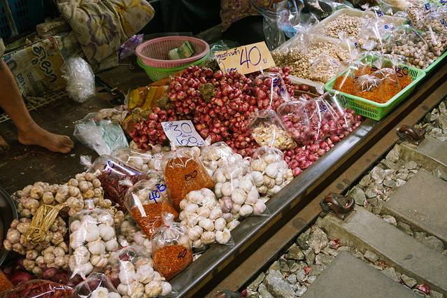 水上市场和铁道市场离得不太远,大巴开了二十分钟也就到了。这时正是中午12点多,而铁道市场的火车【2点半会进站】,彼时铁道两旁的摊贩都会匆匆把摊子收起来,等火车路过后再度摆出来。这一定是个很令人期待的场景!如果人不是那么多,我可以看得到的话。