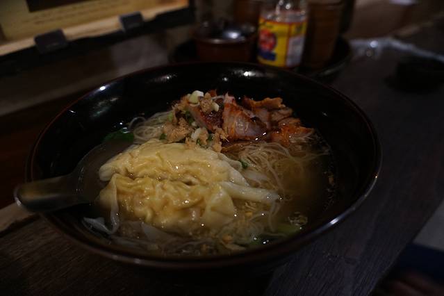 还遇到一家很好吃的云吞面店!小小的店面躲在某层楼的电梯口,灯光是不太亮的暖黄色,墙上满满地贴着他们自己在售的明信片,每一张都是好看又特别的摄影作品。云吞面明明才50铢,也有满满一大碗,面像是没有碱水味的竹升面,云吞里的猪肉也是有嚼劲的嫩,可以说是非常满足啦。