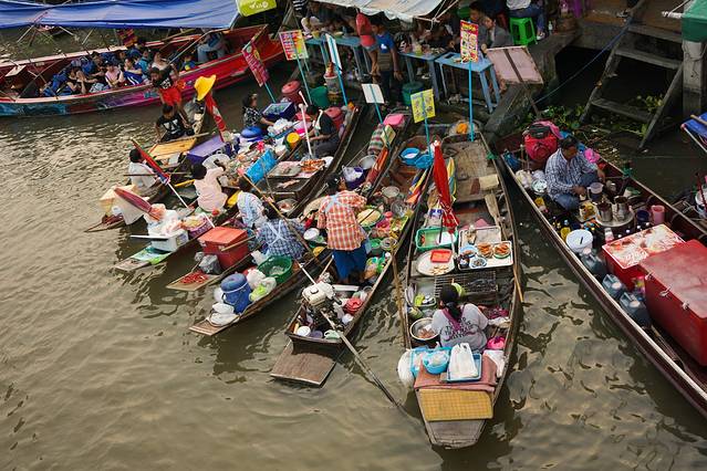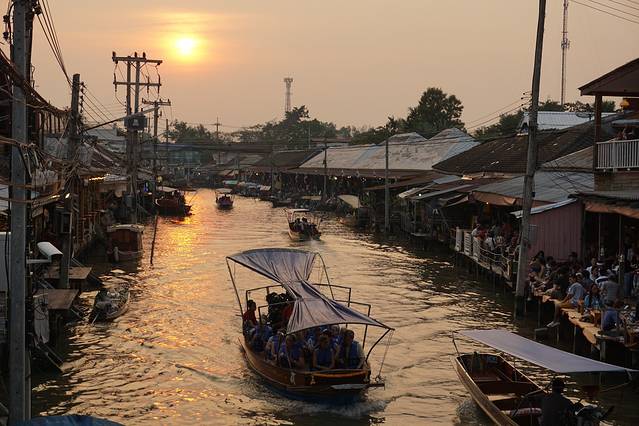 曼谷 大部分的景点都会集中在市中心,唯独几个出名的水上市场、铁道市场等等会在郊外。所以建议想要体验一下这些【水陆市场】的朋友还是【报一日团】或包车前往~这样也会省去不少力气!