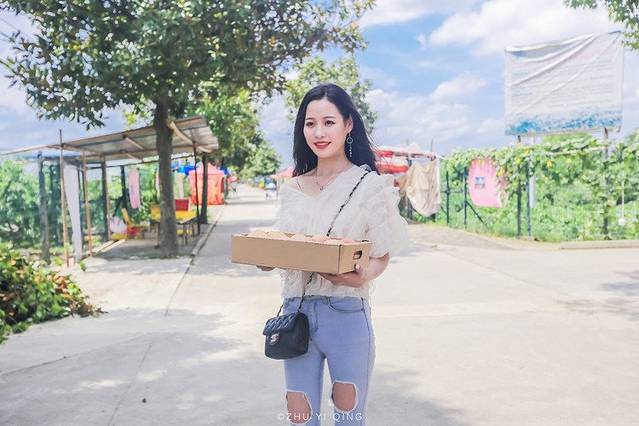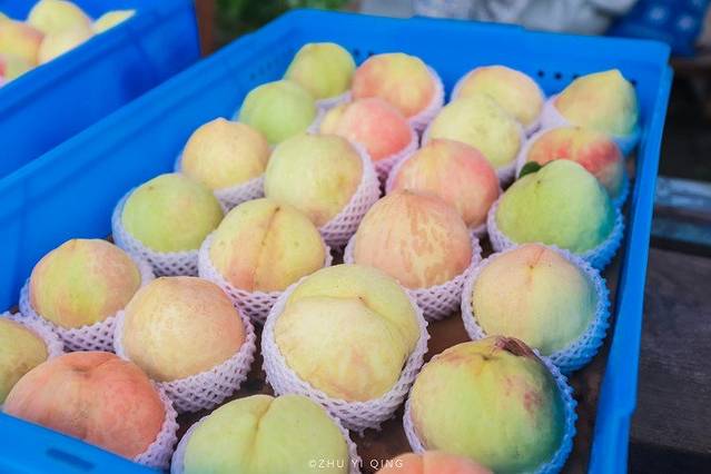 看着妹子捧着满满一箱的水蜜桃,想必也是饿到想赶紧尝一口。