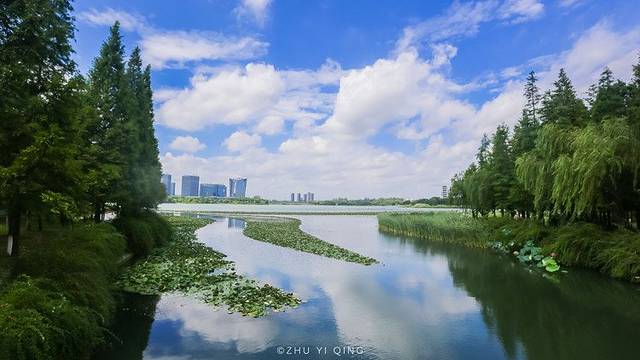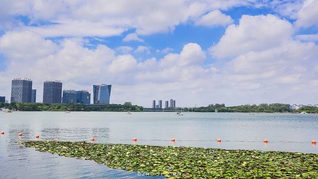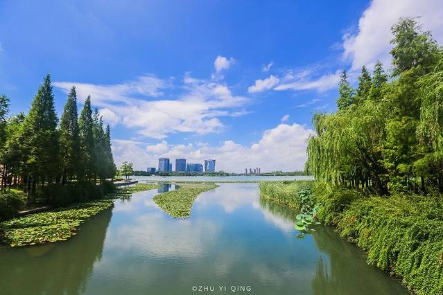 周末,张家港的人都会来这片湖散散步,度度假,而这片湖就是张家港的城市名片:暨阳湖。