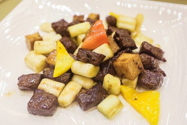 京葱和牛肉,牛肉粒非常有嚼劲。