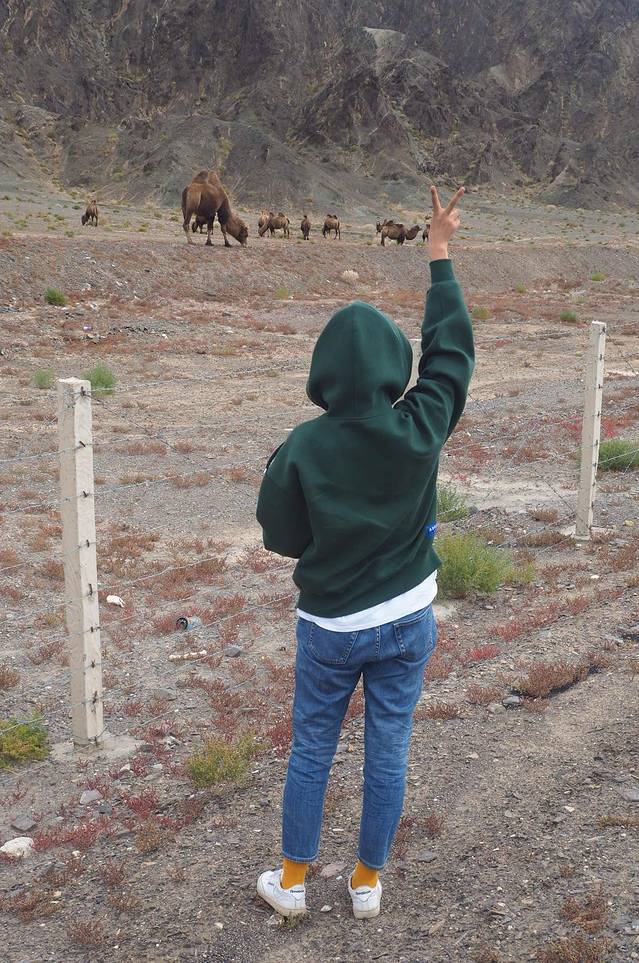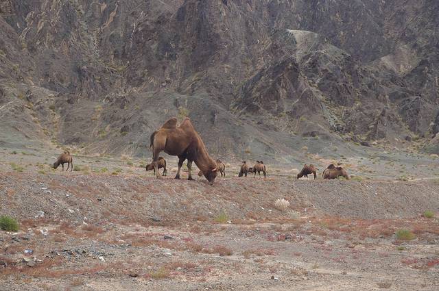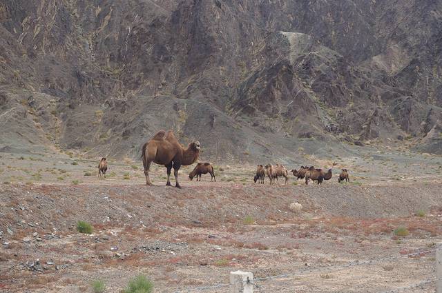 高速旁边有野骆驼....
