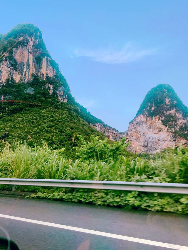去柳州路上遇到的第一个堵车...前面收费站..交钱都这么慢...小崔又开始抱怨了...车里放着“南方姑娘”,我倒是心情很好👂🏾
