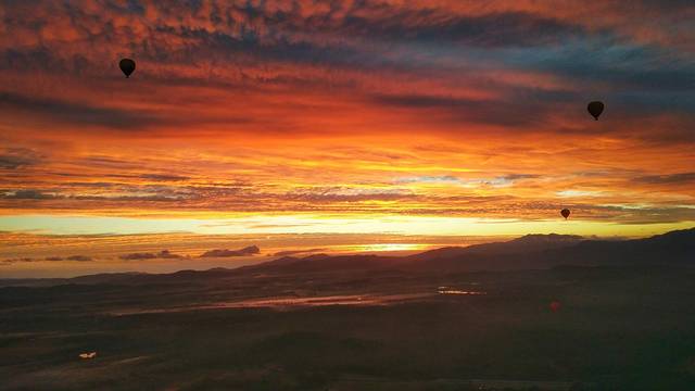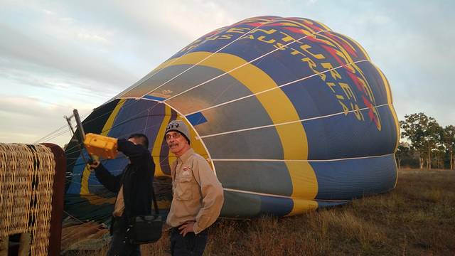 我们在网上订了60分钟的热气球体验,早上四点左右,旅行社按照我们预留的地址前往酒店接我们。这次我们跟了一个日本团(不知道为啥),好在同行有个妹子(即将)是东大的留学生,所以日语交流无压力,我们用日语和英语互为补充,也勉强能理解导游。我们在山上等热气球充气的时候,看到了凯恩斯的星空,恕我只会用“真美啊”这三个字来表达我的震撼,我第一次真真感受到了什么叫“繁星满天”。但凌晨的凯恩斯是真冷啊!建议一定要多带衣服,真的非常冷!