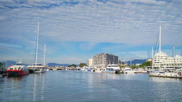 这是凯恩斯的港口,停泊着许多船只,基本都是去大堡礁的。我们坐的就是类似于图中这艘的游轮,但比它要大一些。