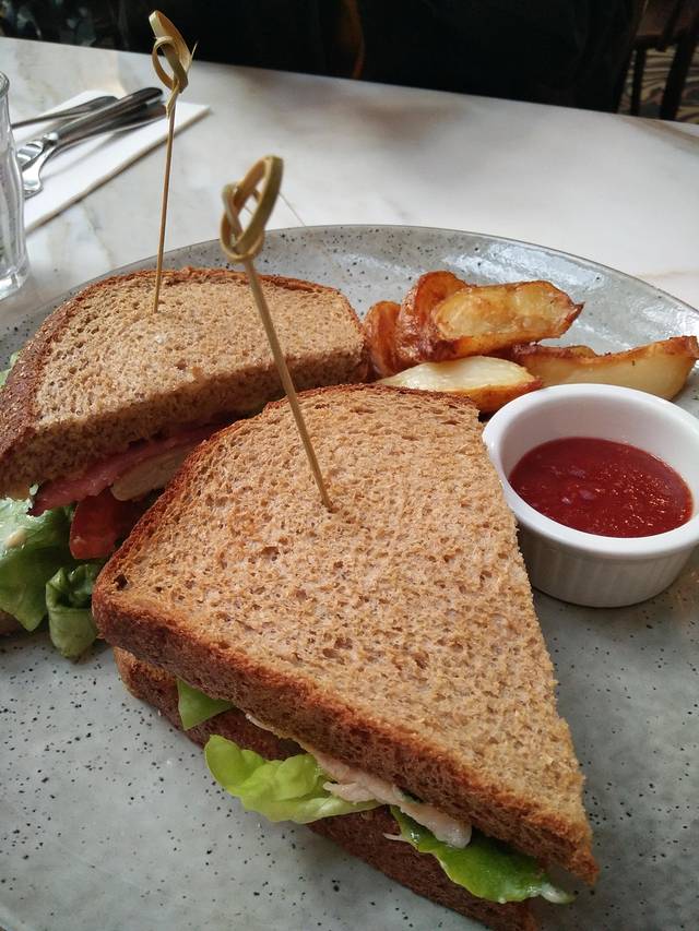 在维多利亚女王大厦二楼一家咖啡厅吃的午餐,意面好吃,沙拉有点咸