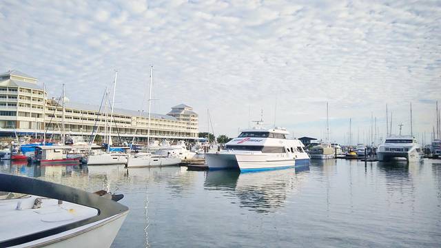 之后我们得空去坐了玻璃船。但玻璃船的底部玻璃部分不是很干净,加之船行搅动了水,所以观看体验不是很好。下午五点左右我们返回到凯恩斯码头。