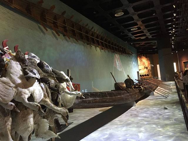 这条龙舟全长17米,是整个省博第一件搬运进来的文物,因为是整木,得在大门修好之前就放进来。顺带说一嘴,这边的龙舟节是农历五月二十四到二十七,并不是为了纪念屈原哟,人家有人家自己的民族英雄啦,一位很牛的屠龙勇士!