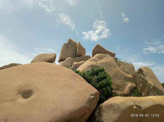 地质公园门票98,学生证减半,网上票价90。(我去问票价的时候,工作人员问我,有没有带学生证,让我乐呵不已)。里面有婚纱摄影基地,我们在那,遇到不下5对新人拍摄;地质公园以山、岩石、摄影基地、酒店、泳池为主,沿海岸线有观光栈道,感官很好,沙滩倒不怎么出色。景区有电瓶车方便,我们,自然不坐的啦。