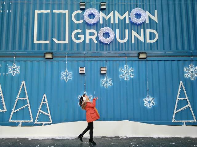 在这个集装箱前排队拍照的人超多der!地面上还标注了排队等待线和拍照线。