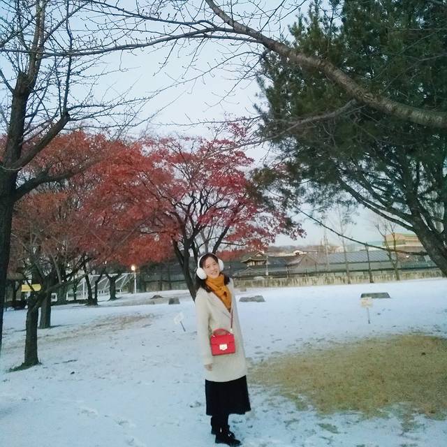 早上起来发现首尔下大雪了,两个南方的妹子开心得跟什么一样,在民宿里大喊大叫,恨不得立刻冲出去看雪,可惜等我们化完妆出门的时候雪已经停了。
