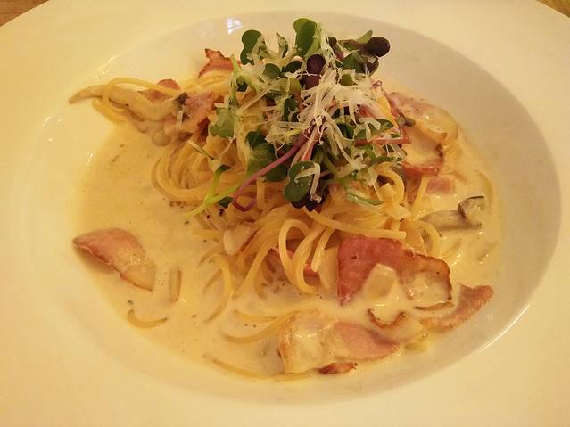 奶油培根意大利面,初尝味道惊艳,但吃多了有点腻。