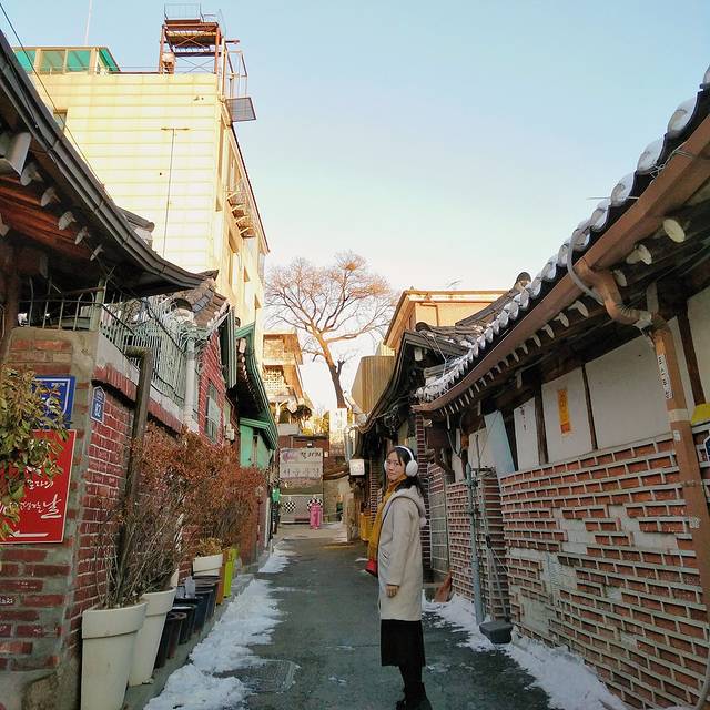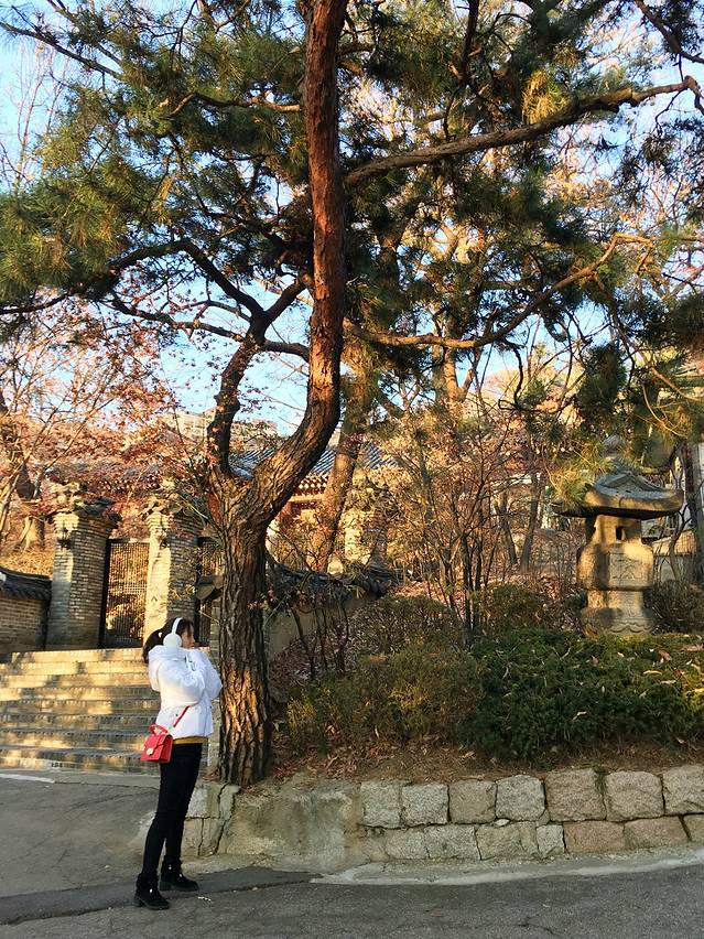 从美术馆出来我们乘坐地铁去了三清洞,路上遇见了好多传韩国传统服饰的妹子,听说这样可以免景福宫的门票。三清洞里有许多古色古香的传统韩屋建筑以及静谧的散步路,充满了浓浓的文化气息。作为鬼怪死忠粉的小玲本打算去寻找剧中某名场面的拍摄地,但到了那里以后完全被其静谧的氛围所吸引,寻找显得不那么重要,我们俩漫无目的地游荡了好久。