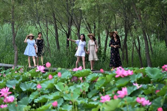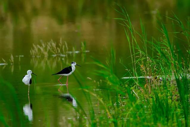 在湿地,顺着水中长廊